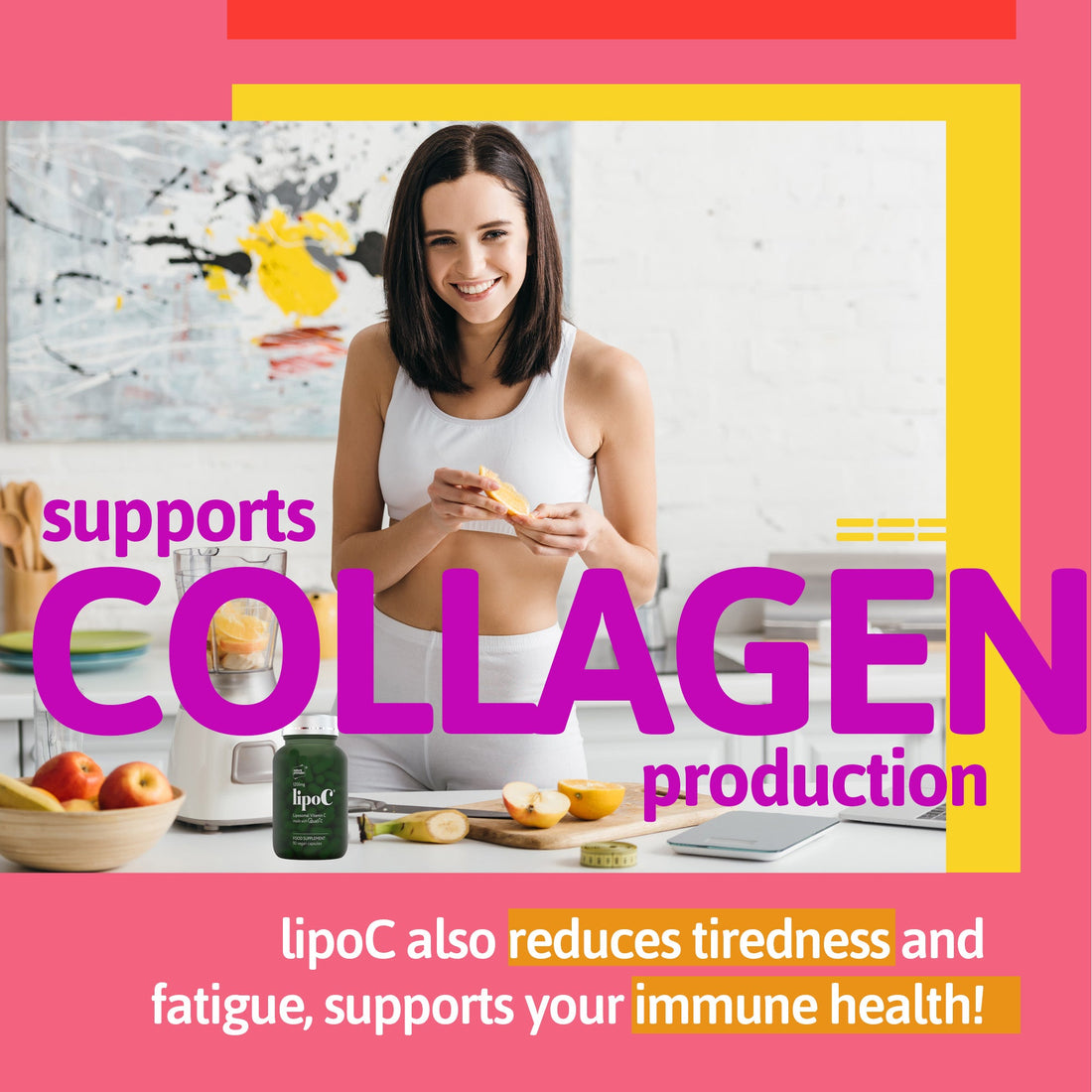 - يدعم lipoC® فيتامين C جهاز مناعي صحي، وجهاز عصبي صحي، كما يساعد في تقليل التعب والإرهاق. يدعم إنتاج الكولاجين لبشرة صحية ولثة وعظام قوية